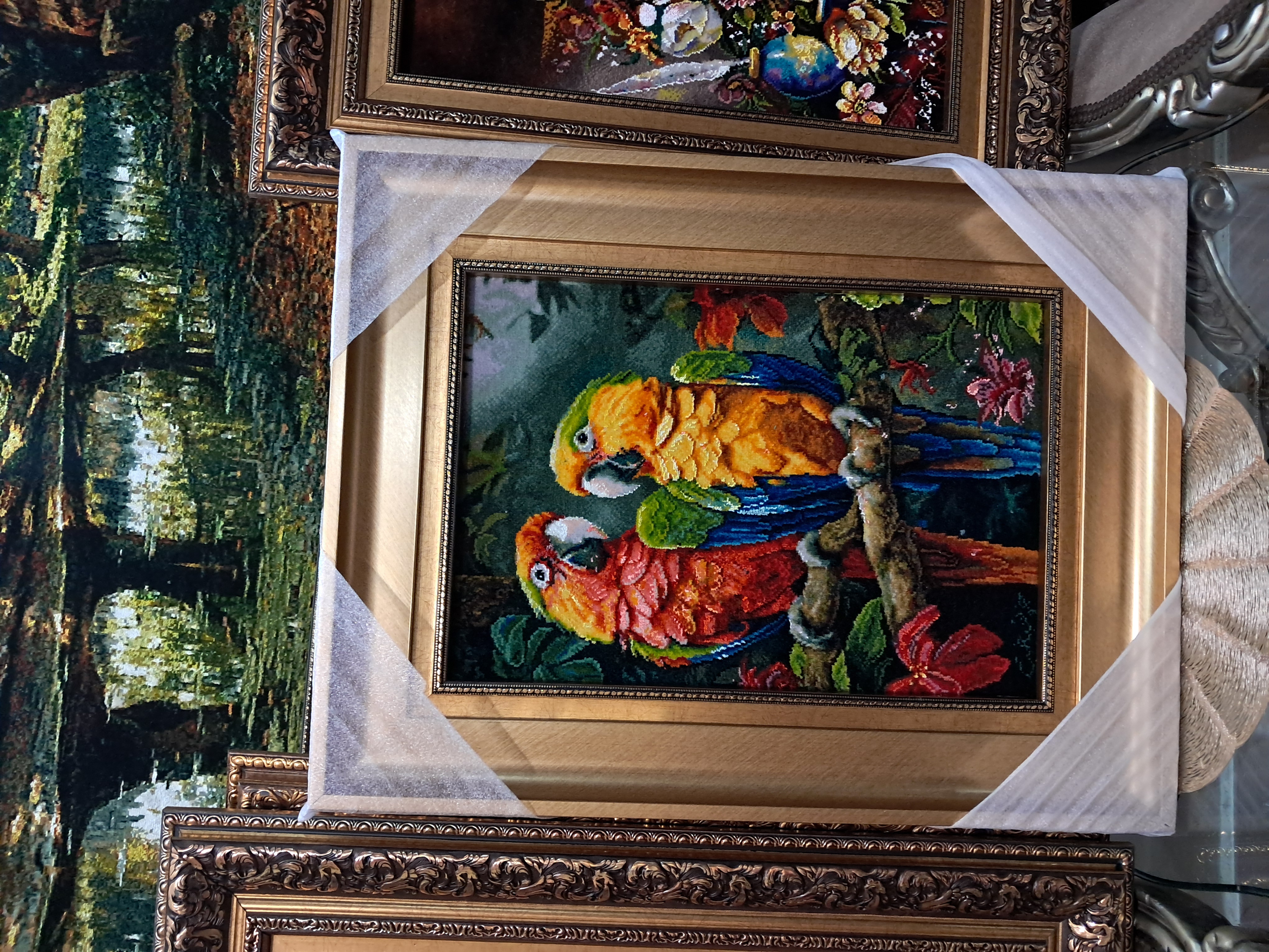 تابلوفرش دستباف/ تابلو فرش دستبافت طرح ۲ طوطی مارک خوشبخت