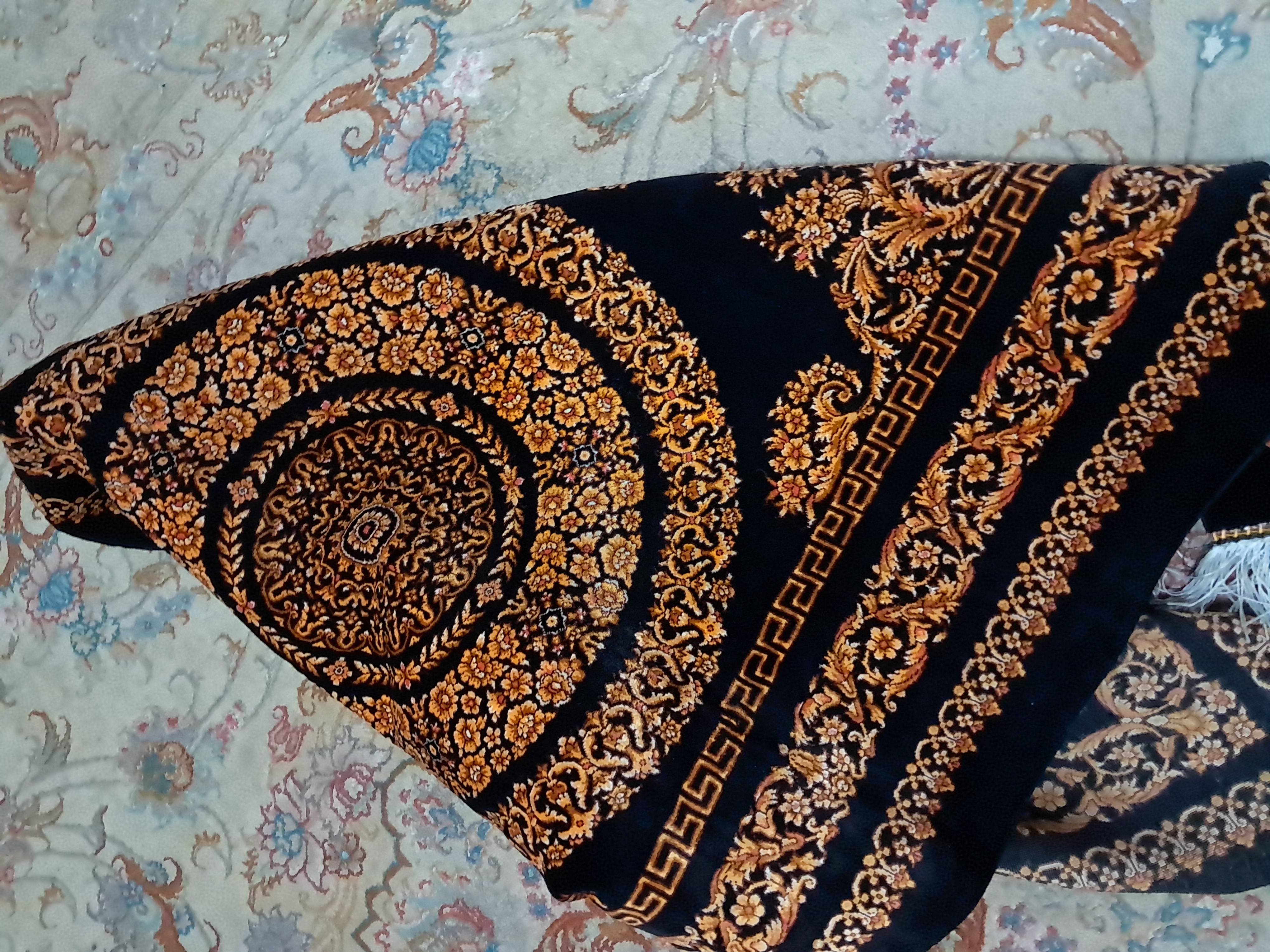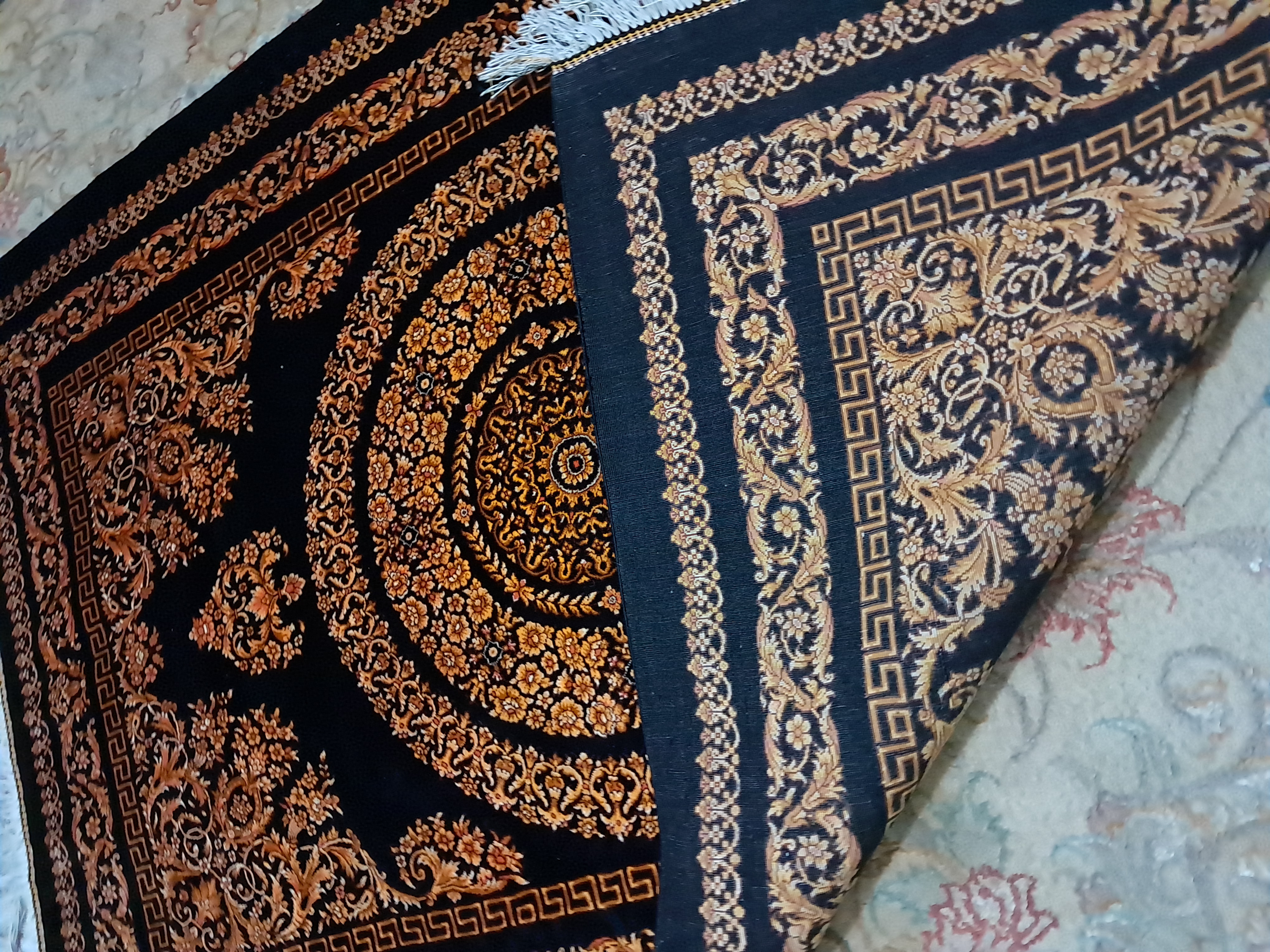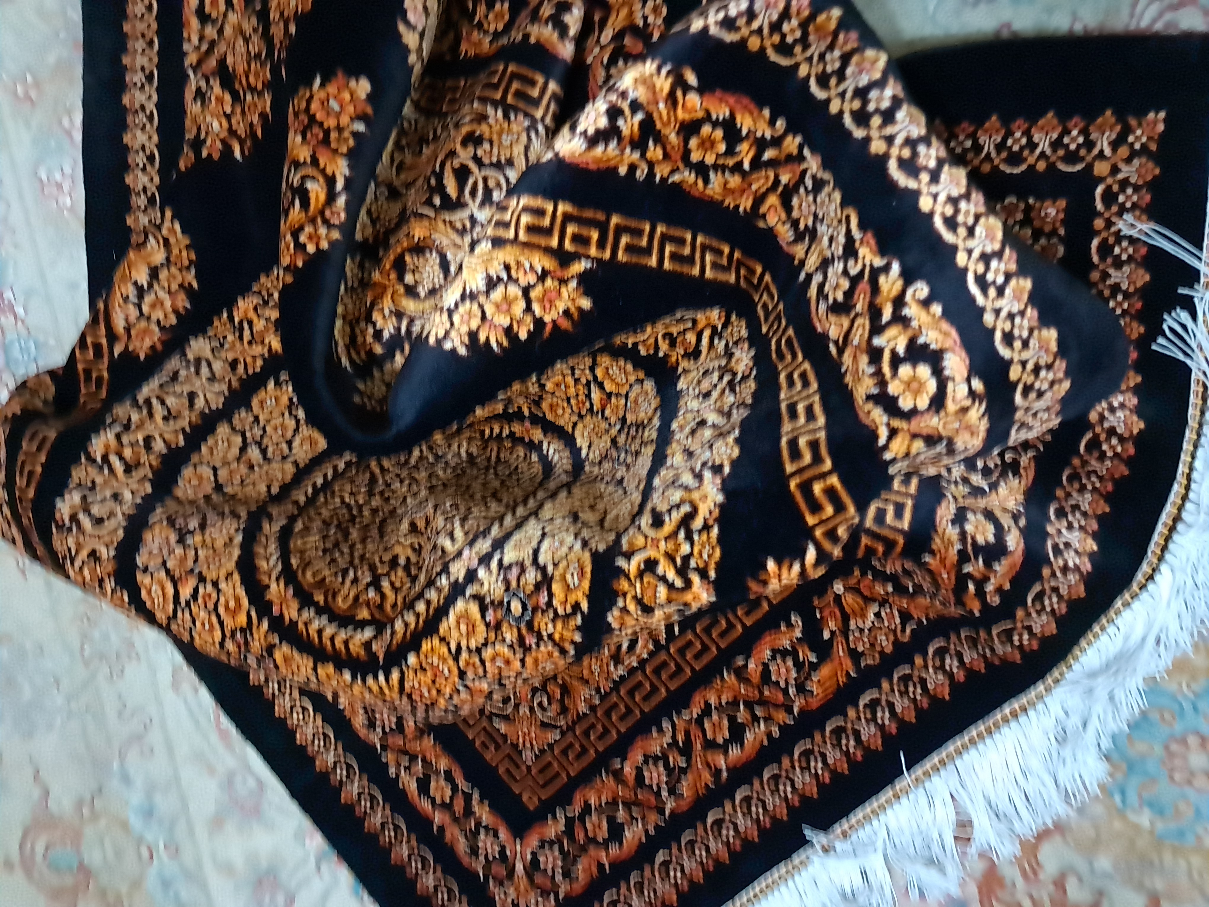 فرش دستبافت/ قالیچه تمام ابریشم زرغ و نیم ۷۰رج طرح ورساچه
