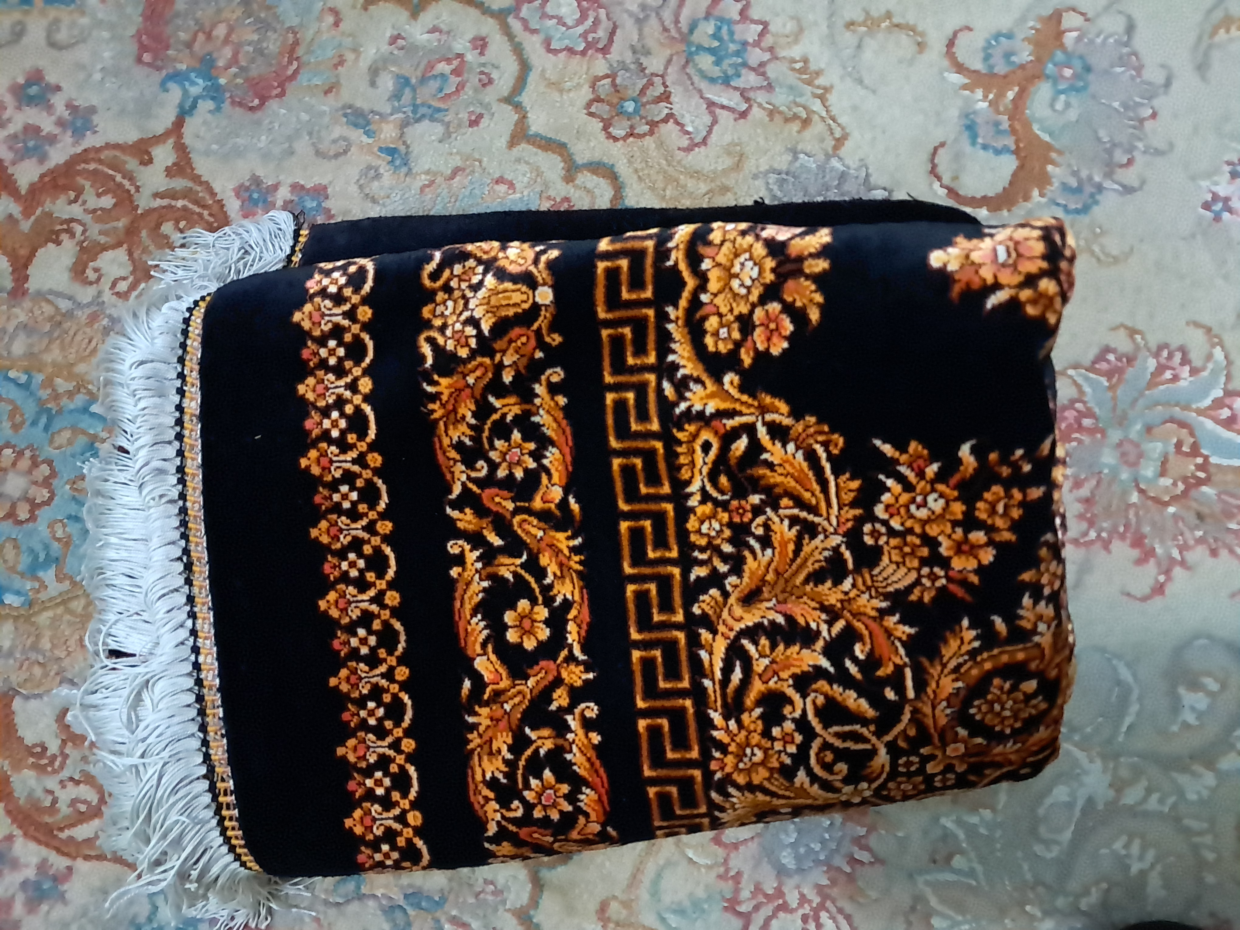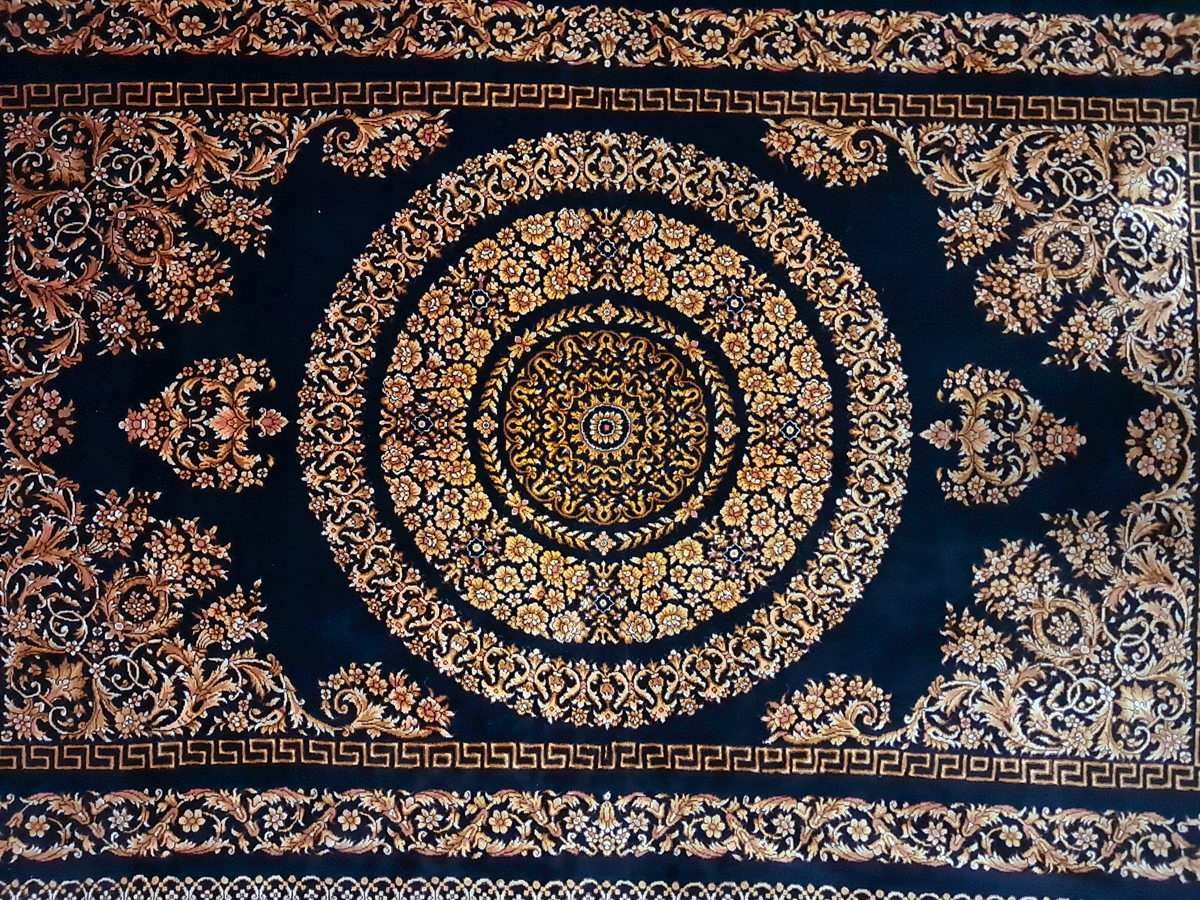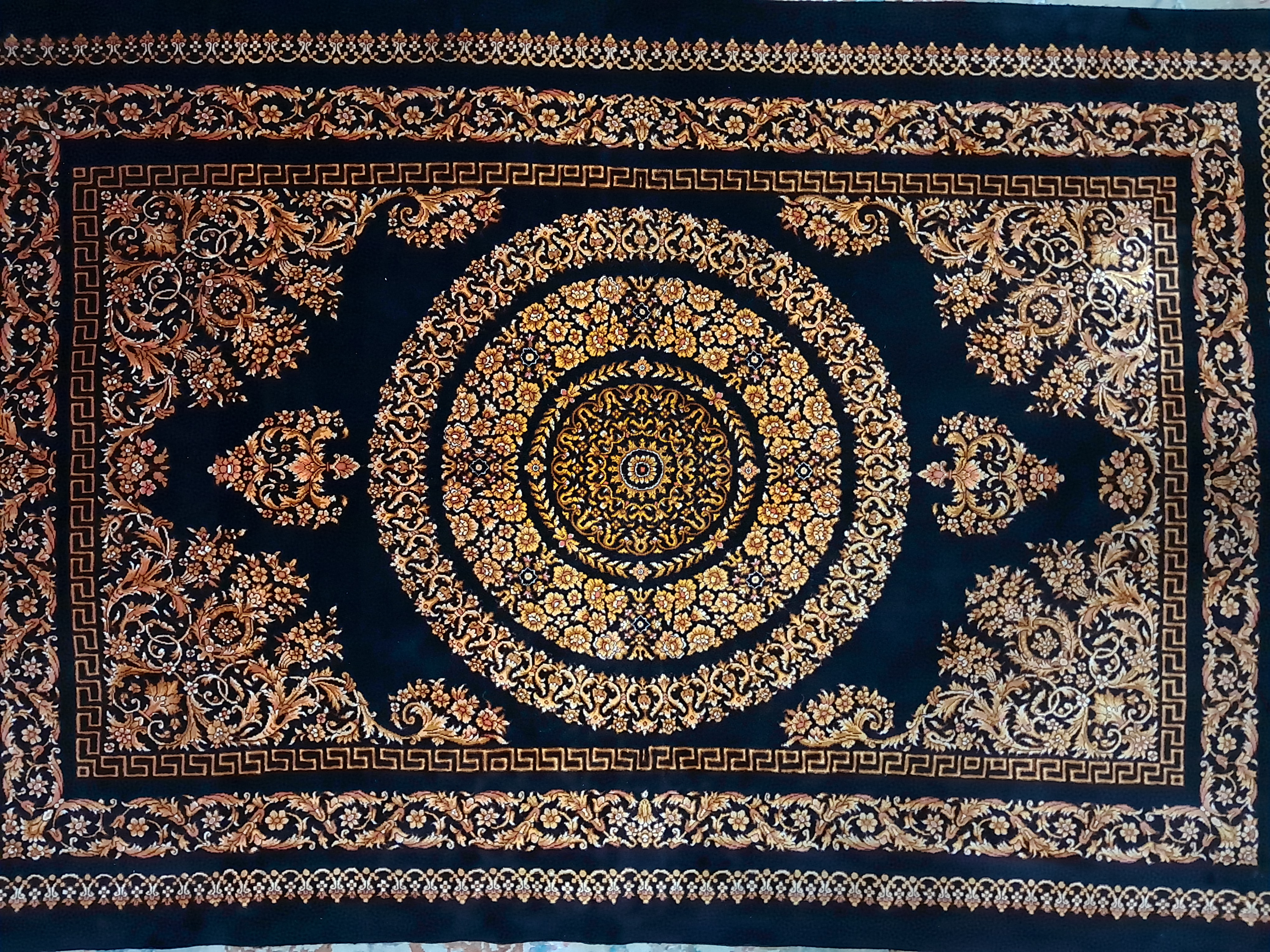 فرش دستبافت/ قالیچه تمام ابریشم زرغ و نیم ۷۰رج طرح ورساچه
