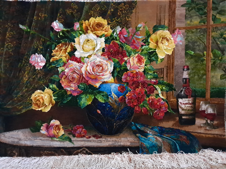 تابلوفرش فوق از جدید ترین طرح های گالری میباشد با یه طراحی سه بعدی و بسیار خاص میتواند مطابق با یک دکوراسیون کاملا کلاسیک مورد استفاده قرار گیرد..باتوجه به خاص و تک بودن این تابلو از قیمت نسبتا بالایی برخوردار است.