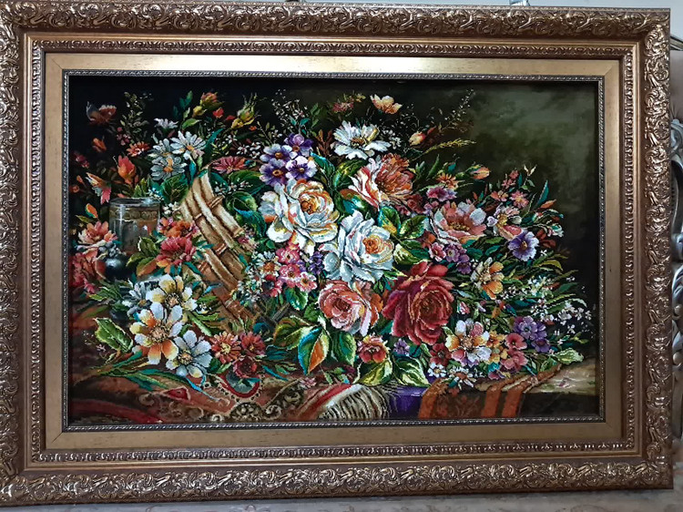 تابلو فرش دستبافت/تابلوفرش دستاف گلدان رز ریخته